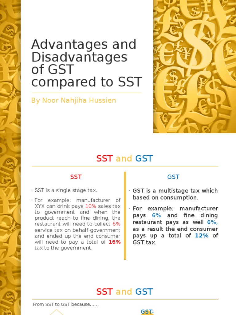 Both gst vs sst with these single stage taxes were abolished when malaysia's gst was introduced.
