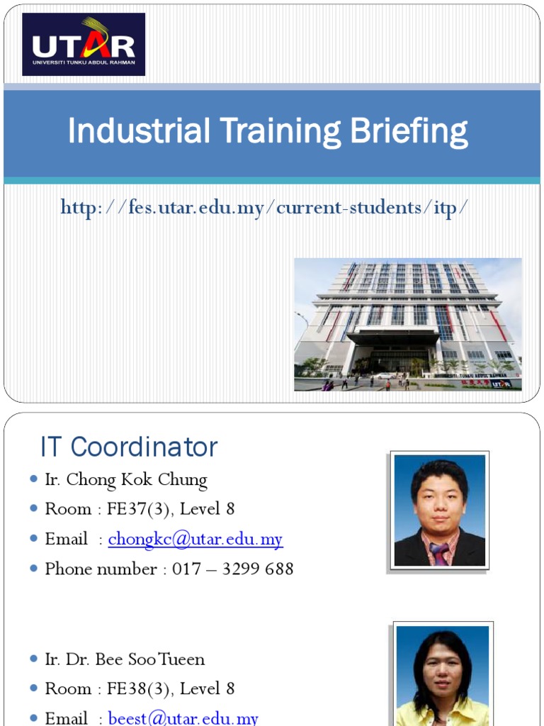 Industrial Training Briefing Http Fes Utar Edu Mycurrentstudentsitp from slidetodoc.com The industrial training is compulsory in our curriculum and plays an important role in educating our students. Arend industrial consultancy is a firm that offers strategic direction and business solutions to companies. Our goal is to help you find the right training partner and to. (b) submitting the industrial training placement lists to the secretariat. Kindly reply to us using the. A list of companies which are classified as utar industrial training cooperative partners (uitcps) will be posted on faculty notice boards or utar website through the faculty general office. This is the list of companies participating/involved in our industrial training programme. But my course of study isn't listed here?